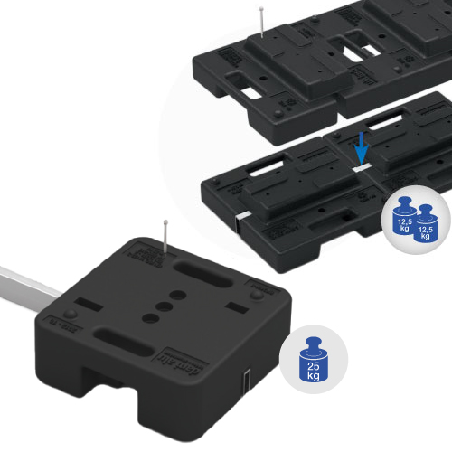 - Optional erhältlich: zwei Gewichte mit 12,5kg