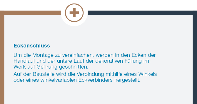 Die Wahl einer um 30° gedrehten Stabfüllung mit den Maßen 55 x 13 mm ermöglicht das Montieren eines Abschlussprofils an der Balkonstirnseite.